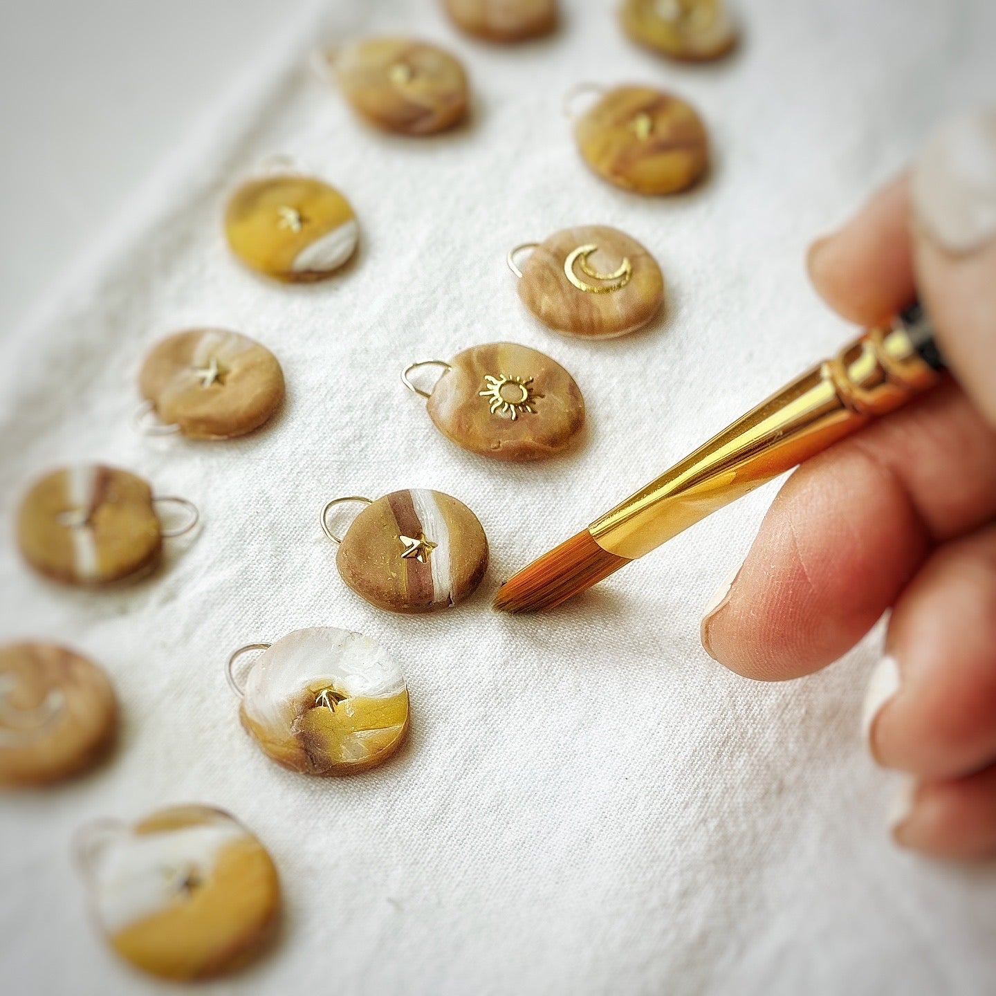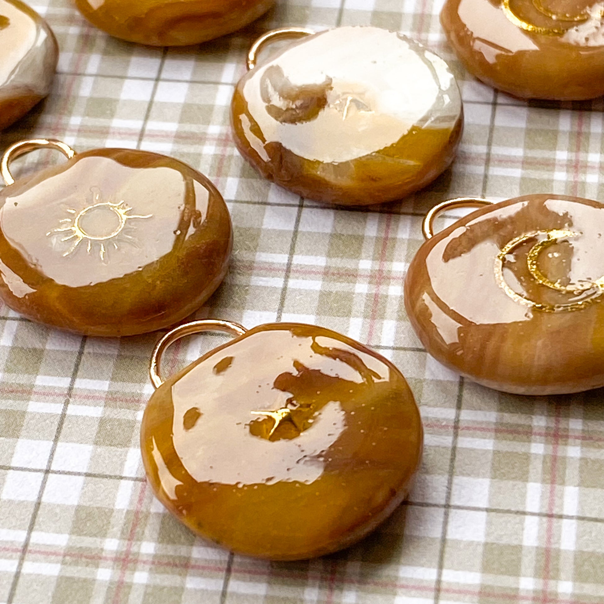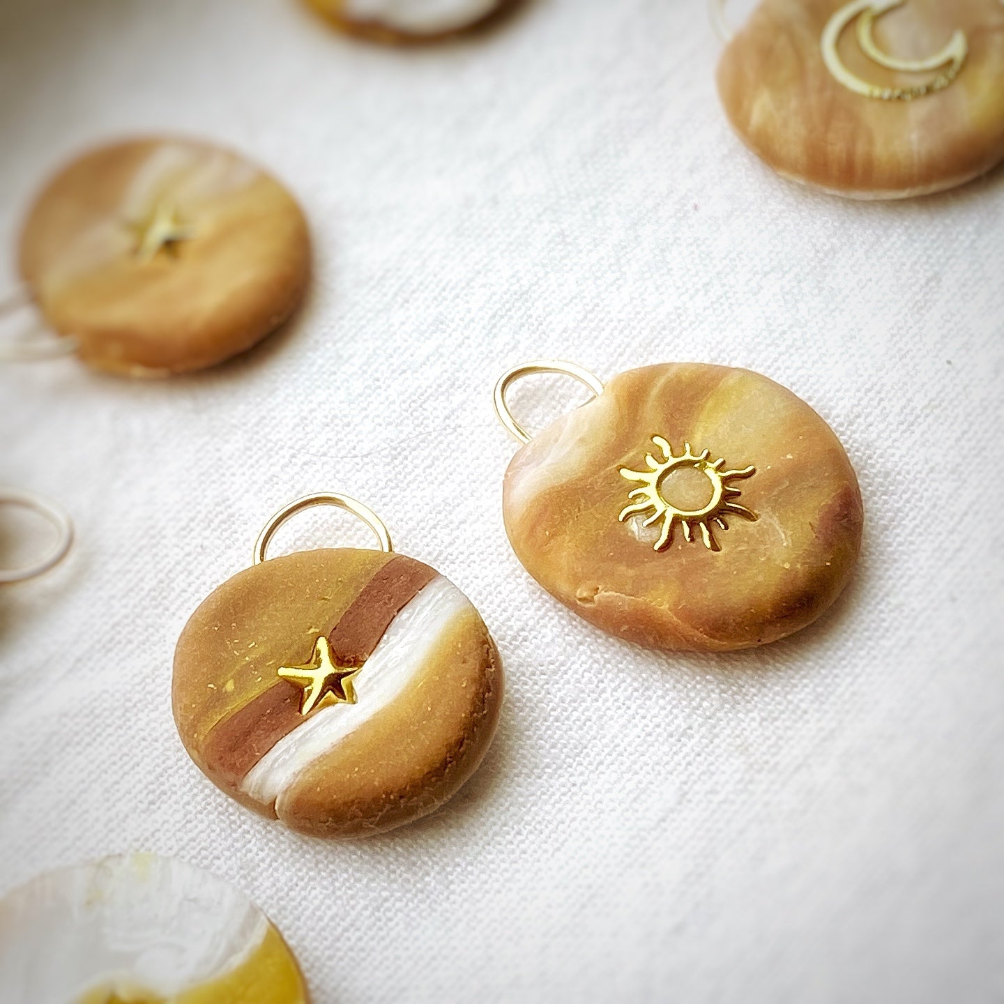 Collar de 5 charms hechos a mano con efecto mármol en Air Clay y aplicaciones doradas. Gancho dorado.