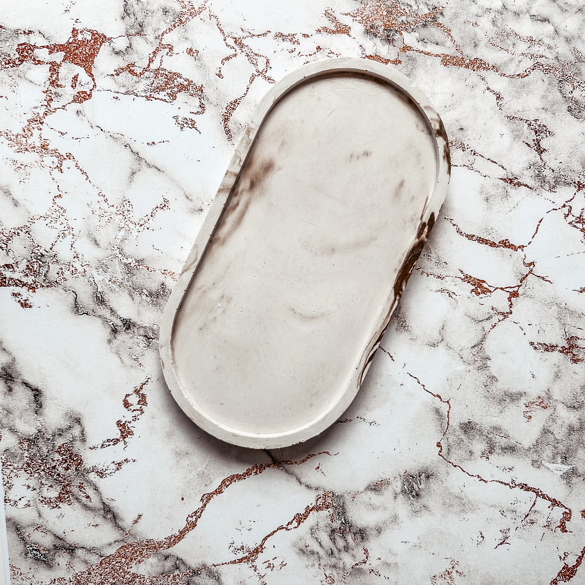 Elegantes bandejas de cemento hechas a mano, perfectas para decorar tu hogar. Ideales para joyas, organizar o como elemento decorativo en cualquier espacio. Su diseño minimalista y acabado amarmolado las hace únicas y versátiles.