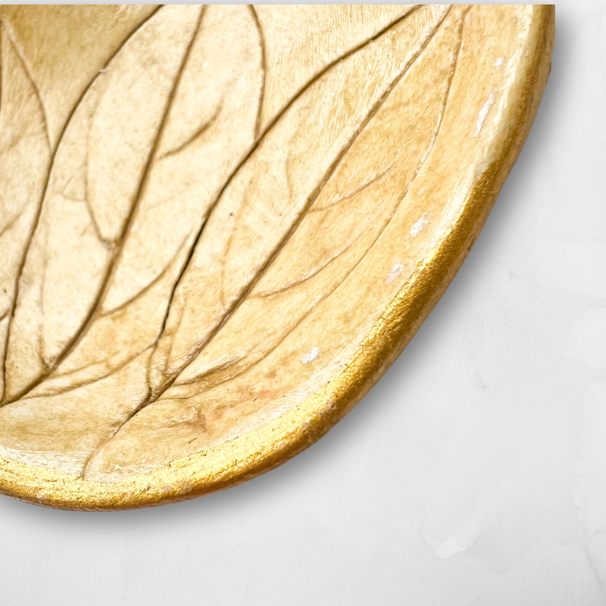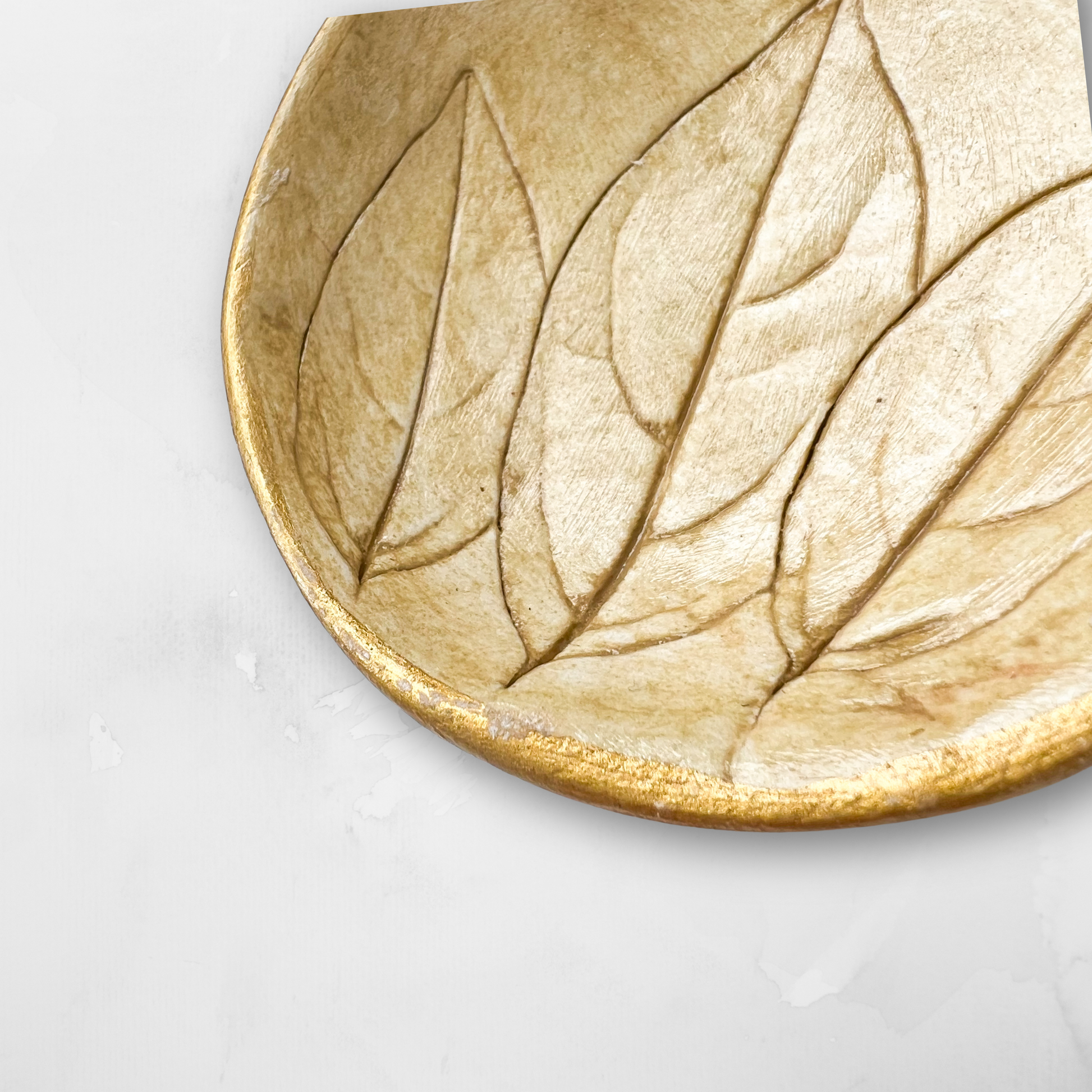 Platito pequeño de arcilla clay de grabado de hojas de durillo.