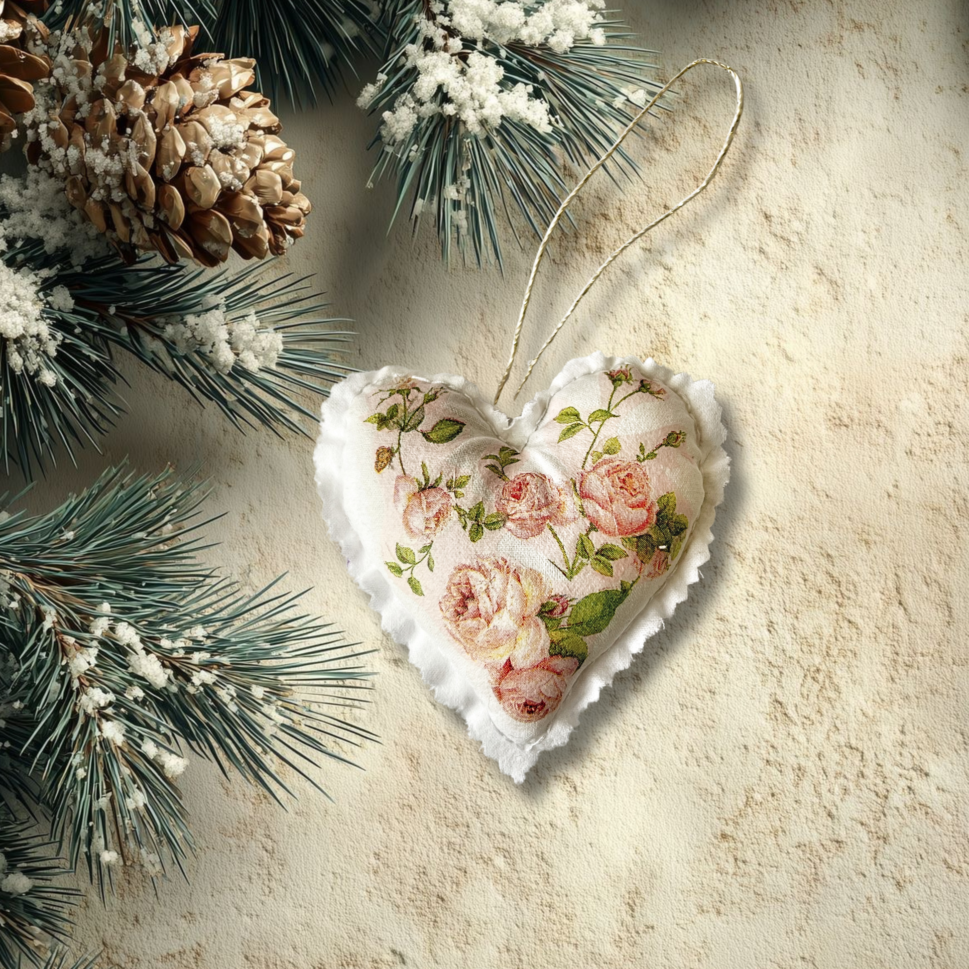 Corazones de tela hechos y cosidos a mano, rellenos con fibras naturales suaves. Ideales para colgar en el árbol de Navidad, en puertas o en cualquier rincón que desees embellecer con un toque cálido y delicado.