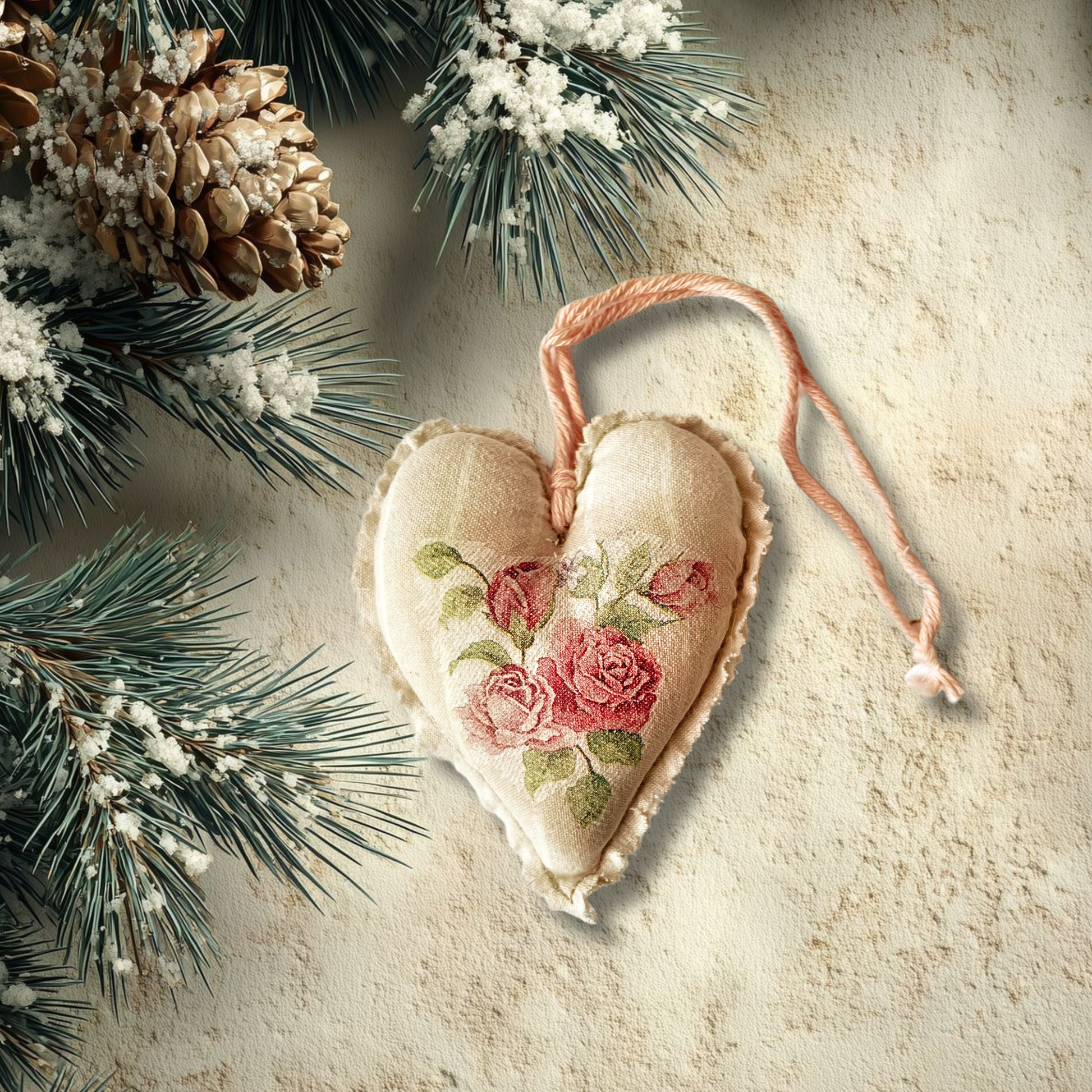Es un corazón de tela hechos y cosidos a mano, rellenos con fibras naturales suaves . Ideales para colgar en el árbol de Navidad, en puertas o en cualquier rincón que desees embellecer con un toque cálido y delicado.