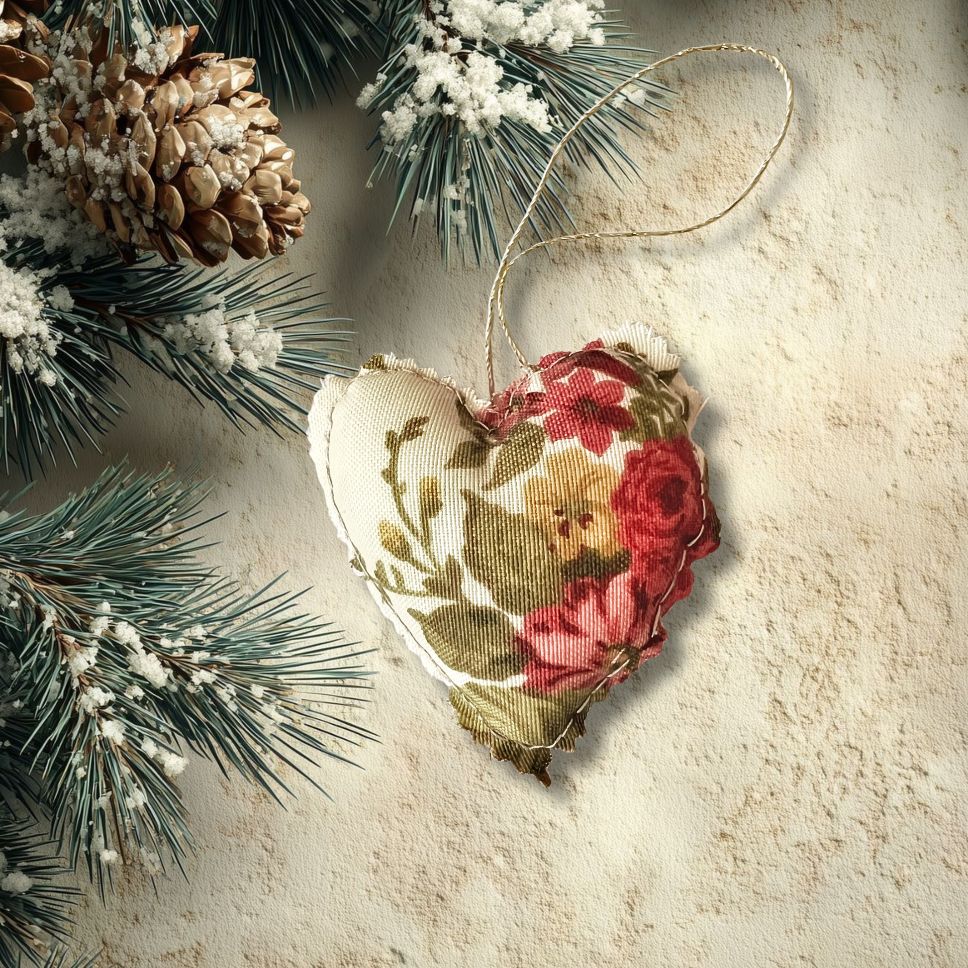 Corazón colgante hecho y cosido a mano en tela, relleno con fibras suaves. Ideal para colgar en el hogar, regalar o acompañar espacios de calma.