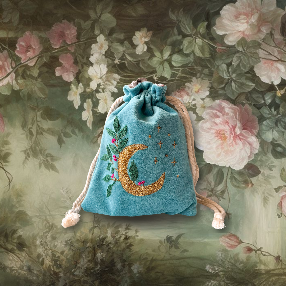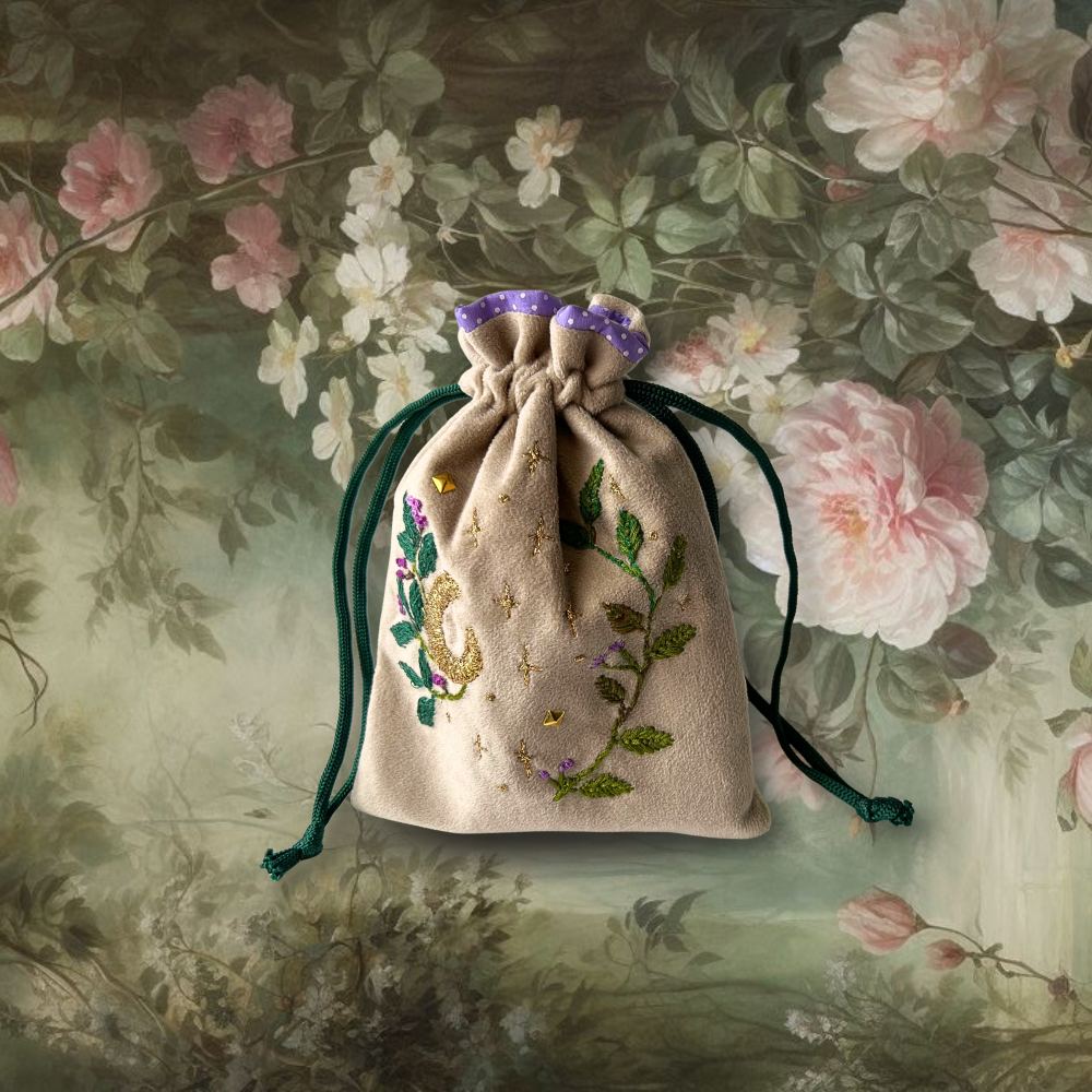 Un tarot se merece vestir y guardar en un saquito de velvet bordado a mano, donde la magia se viste de lujo y cada hilo protege los secretos del oráculo.