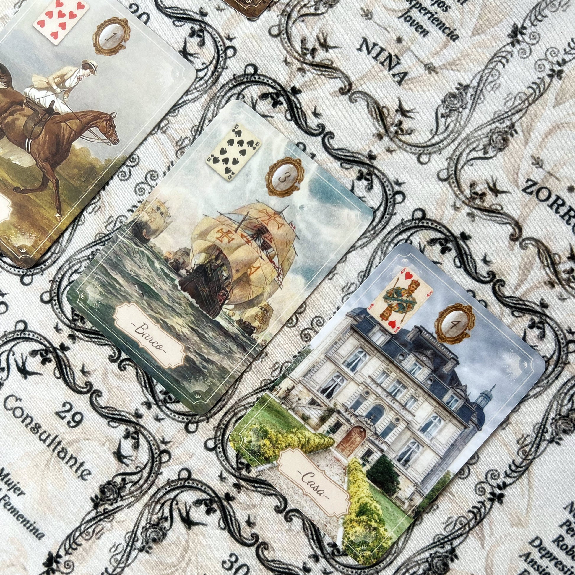 Tapete para tirada Grand Tableau. El Grand Tableau de Lenormand es una tirada completa que utiliza las 36 cartas para ofrecer una visión detallada y profunda sobre distintas áreas de la vida. Permite analizar situaciones, relaciones y futuros con precisión, identificando patrones y conexiones entre las cartas para obtener interpretaciones complejas y enriquecidas. Es la base esencial para dominar el arte de la lectura Lenormand. Las lecturas con grand tableau se deben realizar no más de 2 veces al año.